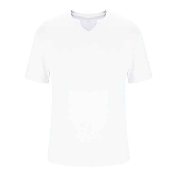 Stay fresh and comfortable with this men’s short sleeve sports t-shirt in white. Made from a flexible polyester and spandex blend, it provides softness, breathability, and durability for lasting wear. The quick-dry fabric helps manage sweat, keeping you cool and dry during workouts, running, training, or casual activities. Designed with a classic short sleeve v-neck style, this athletic top delivers both performance and everyday comfort.
